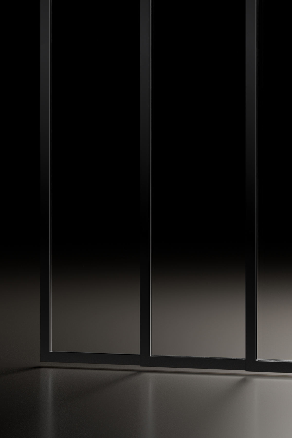 Reserved meeting rooms become open space work areas when the large doors are opened. Supersincro sliding door system consists of a maximum of five framed glazed panels hung from the upper profile and connected to each other at the base by a metal connection element that allows a perfect alignment and a synchronized overlapping opening and closing action.