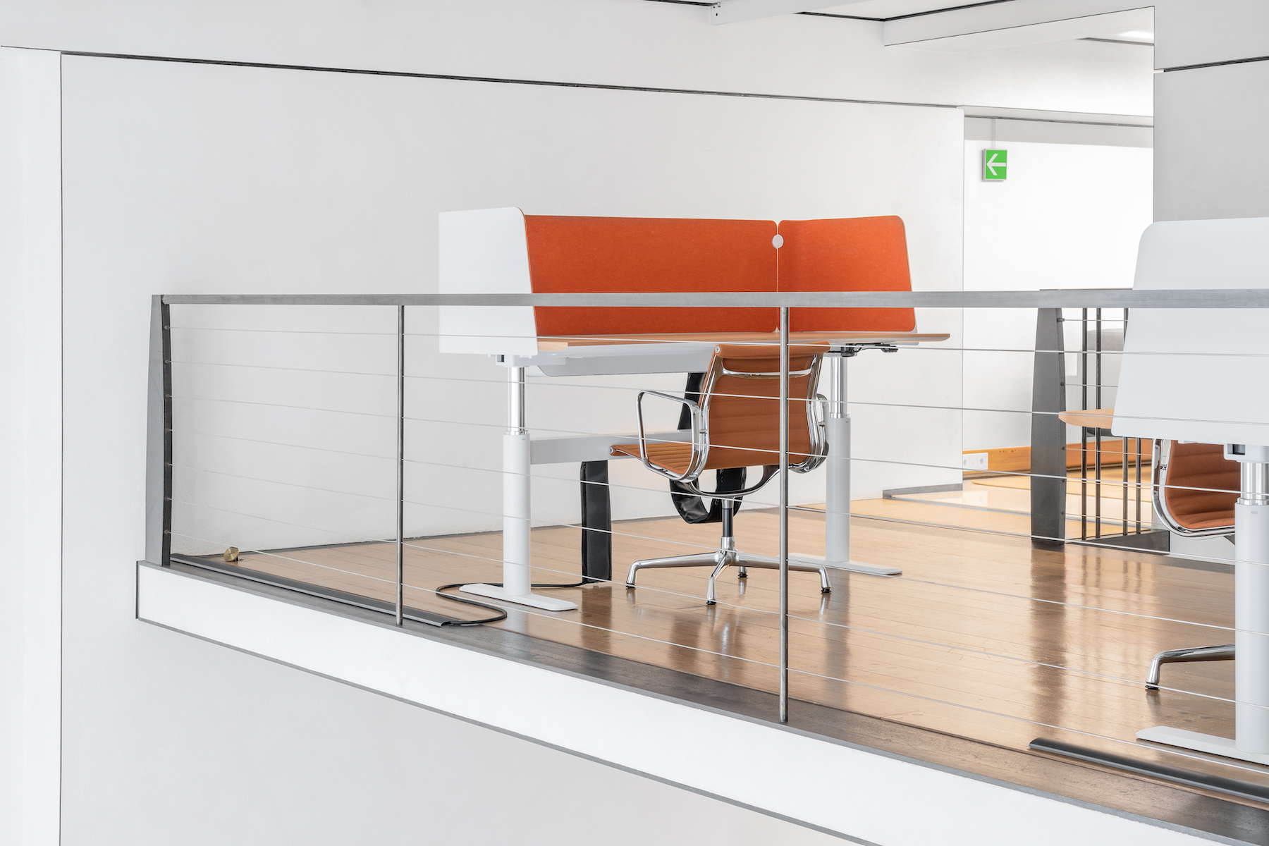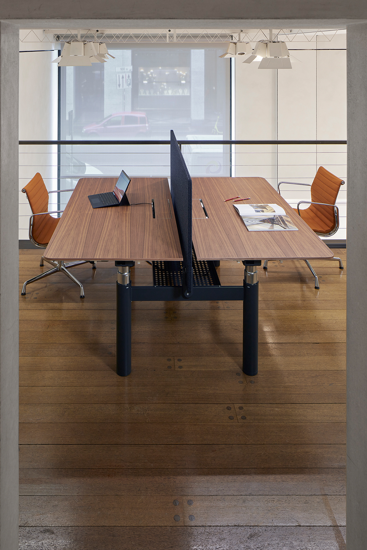 The S200 workstation system features individual and multiple workstations designed for spaces that are always changing and where people work in lots of different ways. The rectangular worktop, offered in a range of sizes, is available either fixed or with the option to adjust the height either manually or electronically. The flexibility of the system means it's possible to alter its configurations at any time in order to adapt to practical requirements. Individual desks can become multiples and vice versa, while fixed-height workstations can be equipped with electronic mechanisms to make them adjustable. All of the structural elements – which are notable for their stability, solidity and safety – can be combined simply and effectively to respond to specific design requirements.
