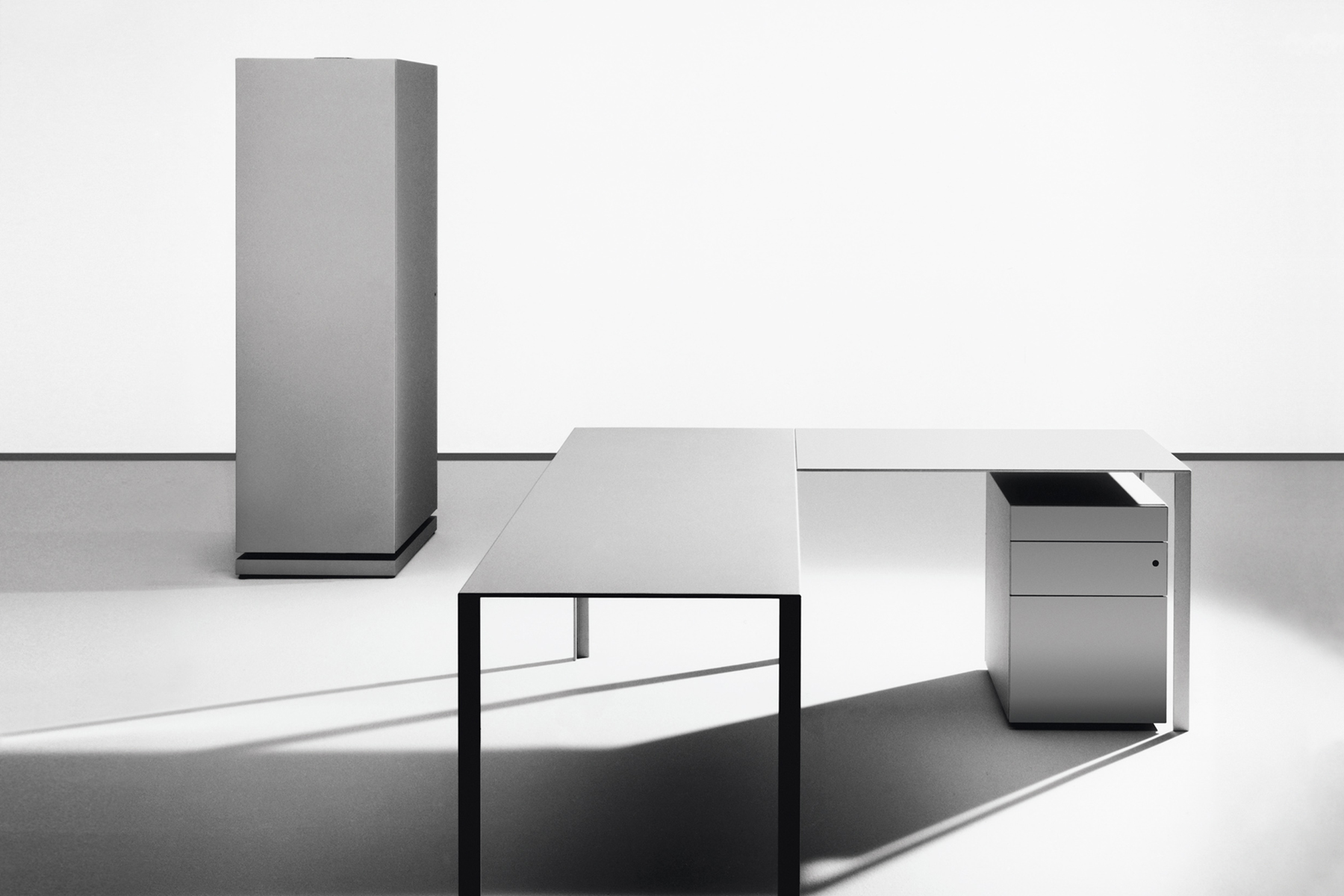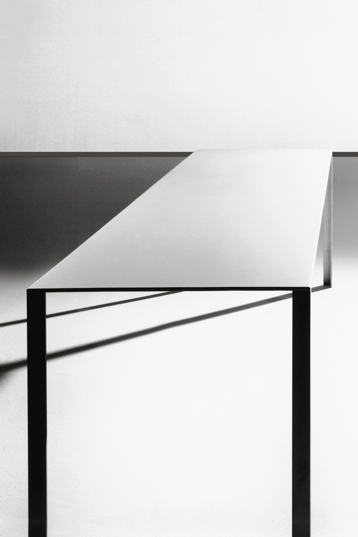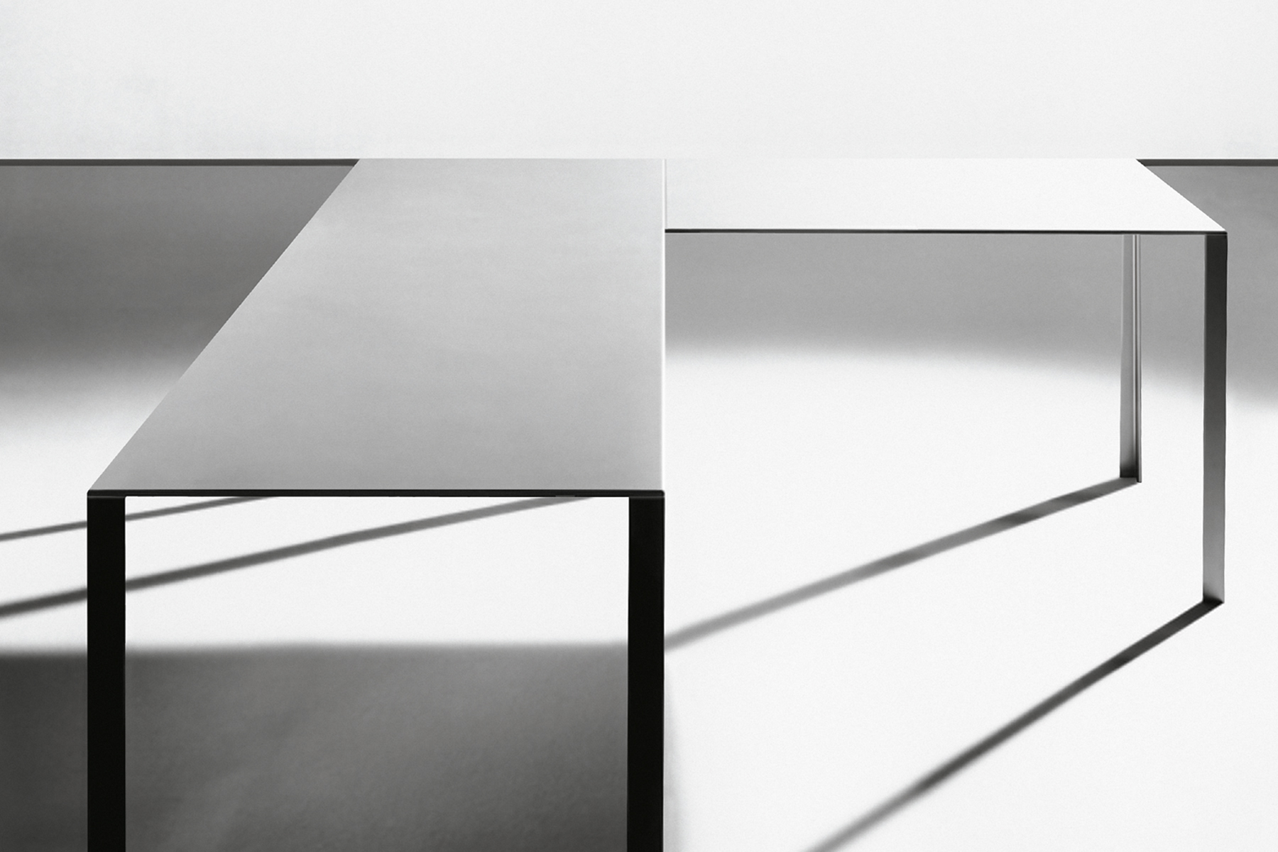 Designed to represent the archetypal table, the Less table is so sleek that it leaves you questioning its solidity – and its very nature. An abstract, monolithic structure made entirely from metal, Less’ design is distilled to its simplest form through the adoption of smooth surfaces and compact profiles. Available in different sizes and in square and rectangular versions, the table can also be used as a workstation. An extension worktop can also be added to create an L-shaped configuration.