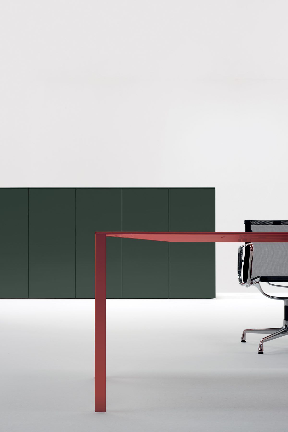 LessLess Color supplements the LessLess series with new pieces designed to complement the workstations, while extensive development work has resulted in a range of eight stunning colours. The new workstations, which are available in a range of different sizes (square, rectangular and L-shaped), feature an exclusive worktop with integrated Forbo linoleum insert in the same colour as the aluminium structure. Completing the series is a range of tables equipped with cable access, a leg designed to allow wiring to pass through it and a basket for organising the cabling. These solutions serve to conceal the technology, which is always there yet never on show.