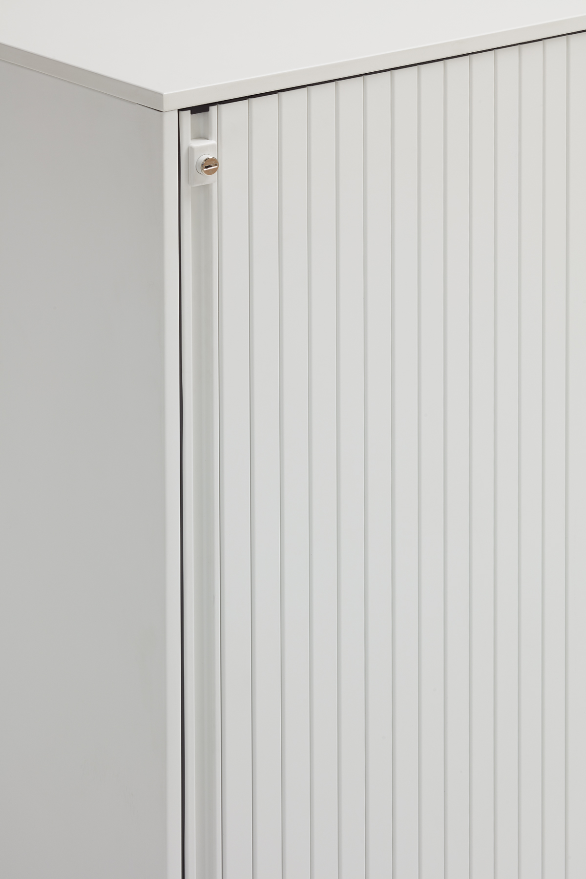 The pieces feature laminated abutments, a base, a cover and a rear panel in metal with painted borders in ABS. The wrap-around roll-top panel, available in the horizontal and vertical settings, is the distinctive feature of this piece, which can be provided in a range of different sizes. The shelves are made from sheet metal and their height can be adjusted. The attention to detail, practicality and rational feel of the MT series mean it can be combined with all UniFor workstations.