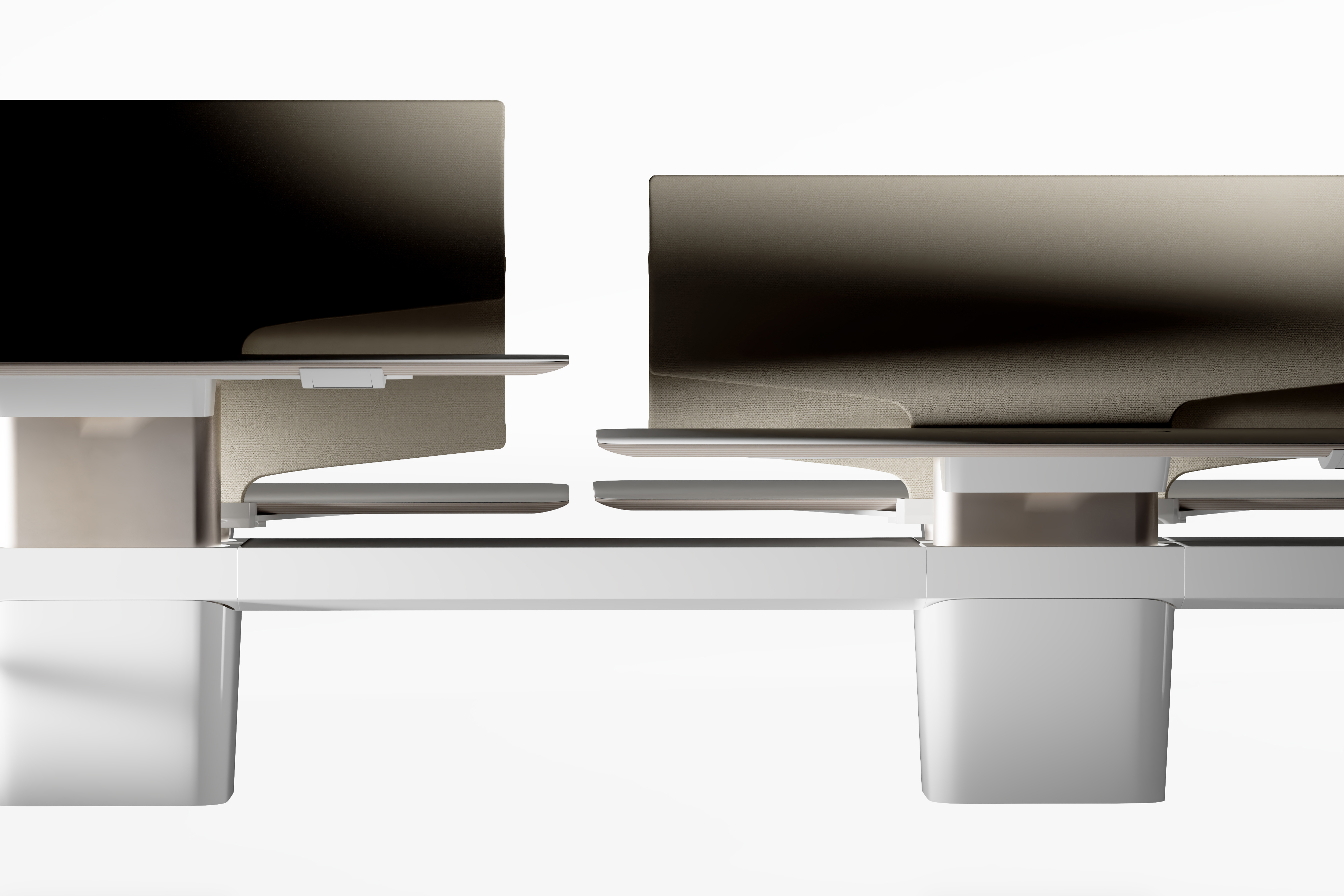 Spring System is a workstation system designed to enhance well-being and ergonomics through height adjustment without electromechanical actuators. The work surface moves solely through human interaction, ensuring a seamless and intuitive user experience.