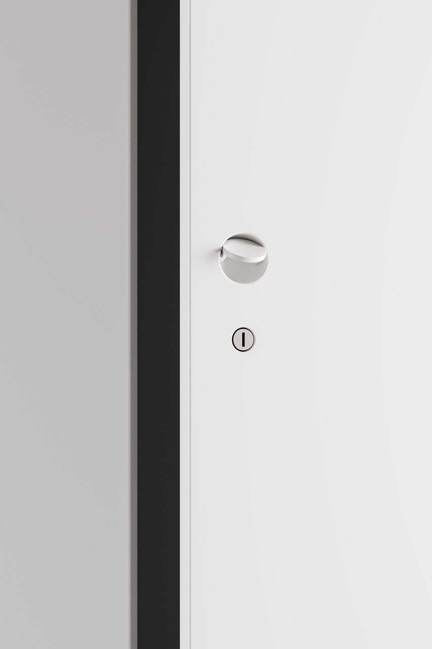 Ogni dettaglio è studiato per garantire ergonomia e usabilità, con sistemi di apertura discreti, chiusure con serratura integrata e accessori interni progettati per un’organizzazione dello spazio efficiente e intuitiva. Elemento distintivo è l’iconico frame a 45°, che accoglie la maniglia delle cassettiere, traducendosi in un segno grafico riconoscibile, comune a tutta la collezione. Il lavoro su spessori, angoli e giochi d’ombra è minuzioso, studiato per alleggerire la presenza percettiva senza compromettere la robustezza.