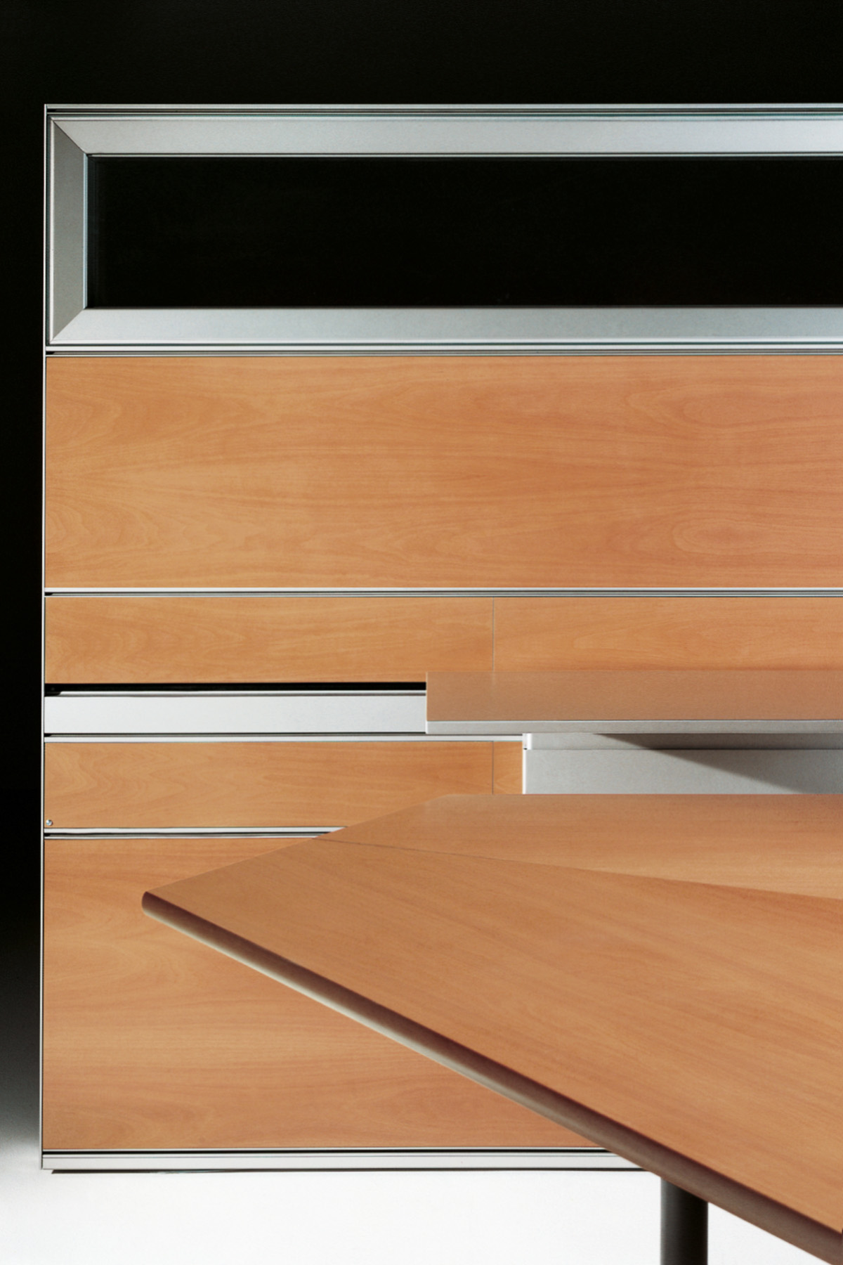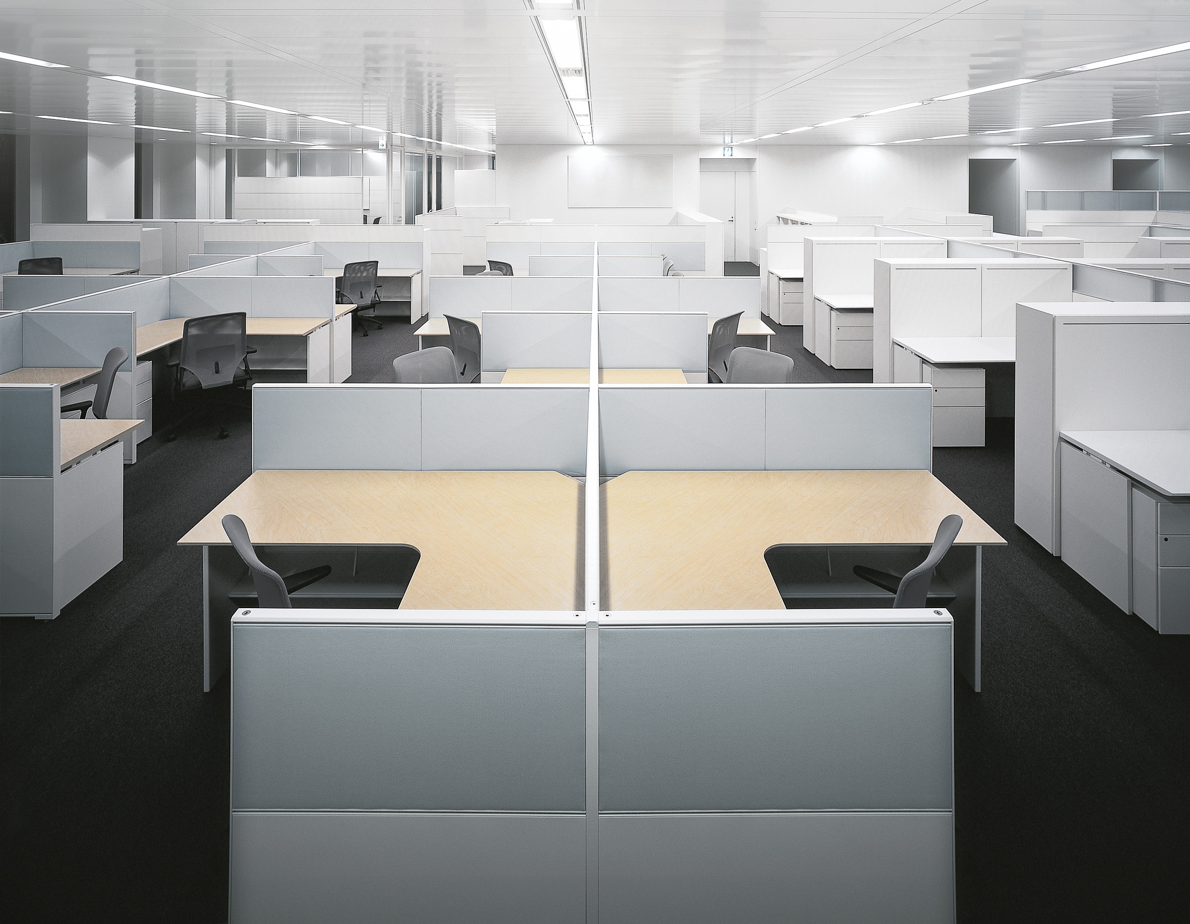 Il sistema di scrivanie, piani di servizio e tavoli Easy, prodotti in differenti dimensioni e formati, offre soluzioni costruttive semplici e innovative capaci di interpretare le diverse modalità di lavoro, configurando ambienti operativi a spazio aperto, protetto o chiuso dinamici e confortevoli. Le possibilità di aggregazione del sistema sono incentivate dalla disponibilità di due profili del piano, scivolato o stondato, che semplificano il raccordo tra i vari elementi e dai differenti basamenti disponibili: una colonna di forte spessore, conica alla base e ancorata a terra da un piatto in acciaio a sezione lenticolare, oppure una spalla laterale chiusa. Completano il sistema i cestelli volti al passaggio dei cavi e all’alloggiamento di scatole elettriche.