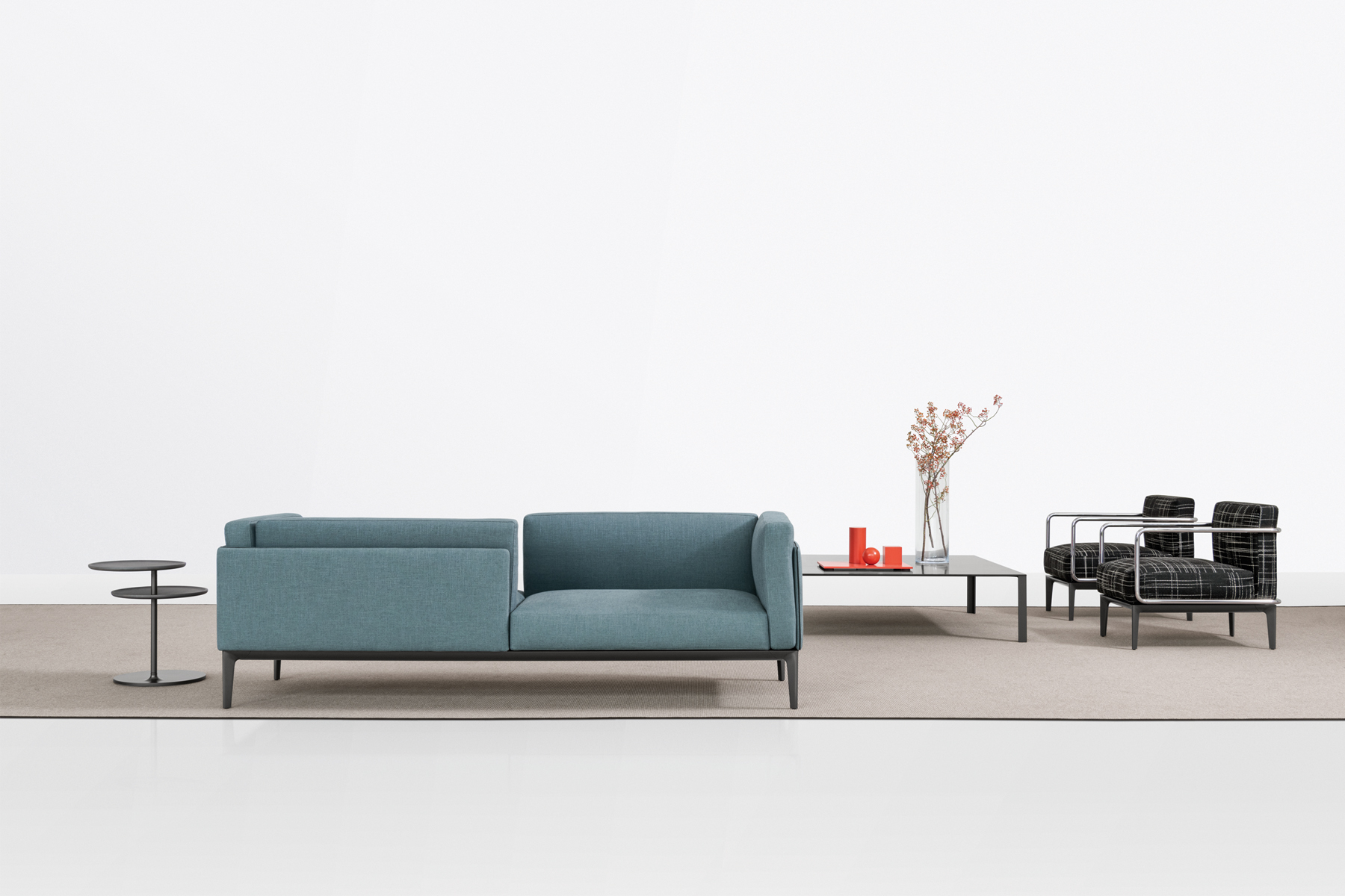 Gli elementi base si possono combinare, secondo una vasta gamma di possibilità, per attrezzare spazi ufficio individuali con piccole, ma confortevoli, lounge o grandi spazi pubblici.