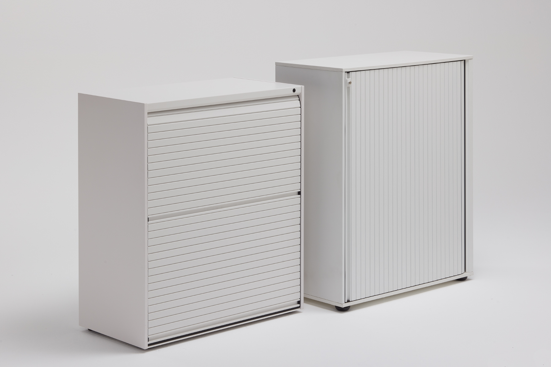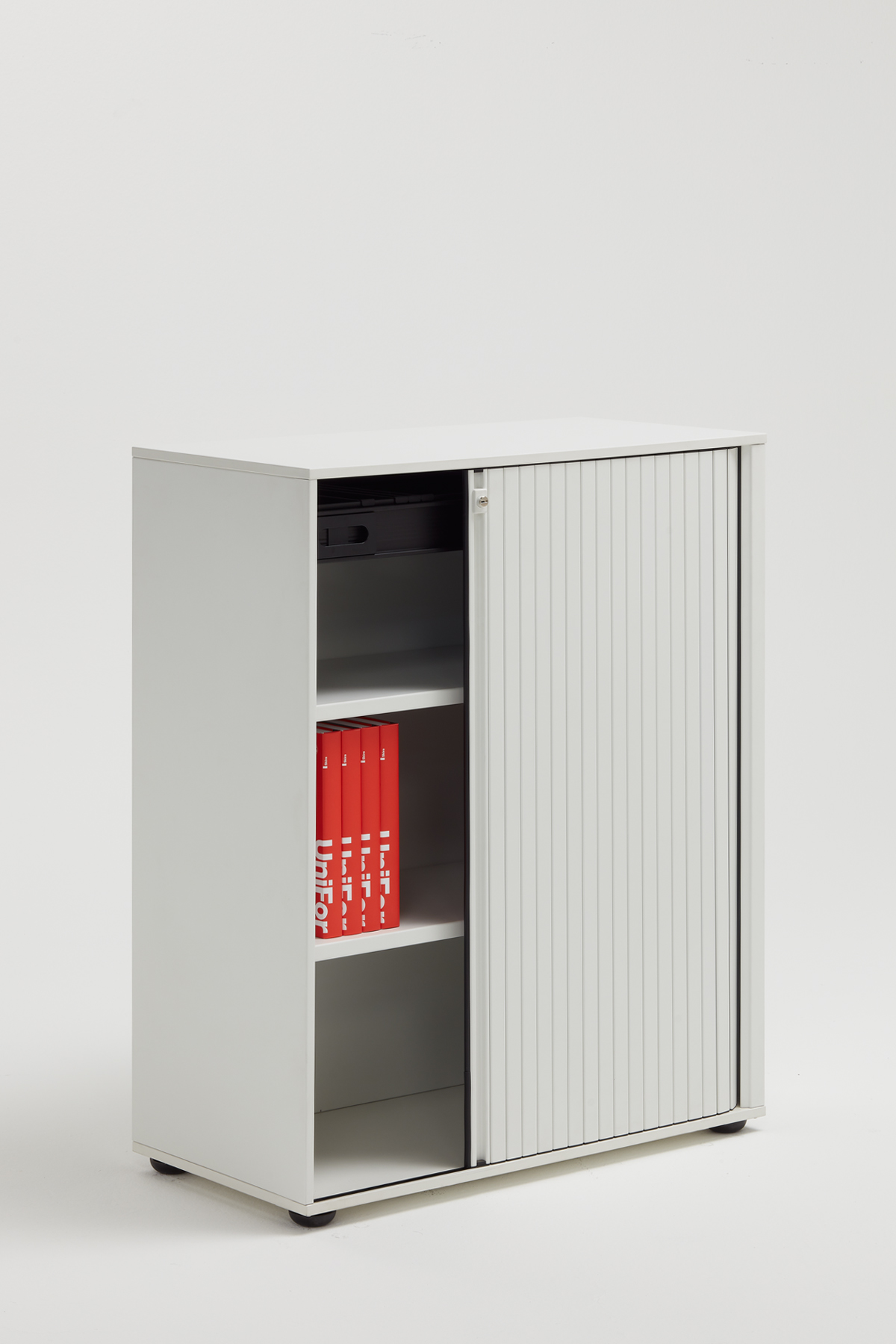 Realizzati con spalle in nobilitato, basamento, coperchio e schienale in metallo e bordatura in ABS verniciati. La chiusura a serranda avvolgibile, orizzontale o verticale, è elemento caratterizzane di questi arredi disponibili in differenti dimensioni. I piani sono in lamiera e sono regolabili in altezza. Studiata in ogni dettaglio, funzionale e dal sapore razionale la serie MT può essere coordinata con tutte le postazioni operative UniFor.