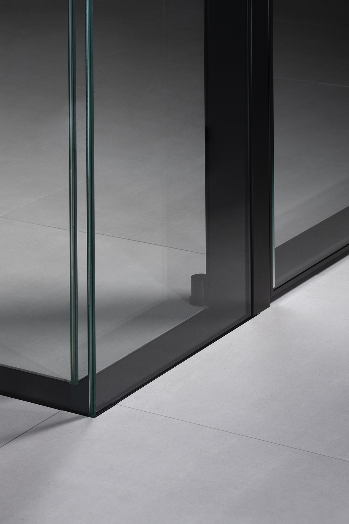 The SC&A and Supersincro sliding folding door systems consist of full height glazed panelling, integrated in flooring and the false ceiling. Both doors contain all mounting elements and sliding devices within the head track integrated in the ceiling.