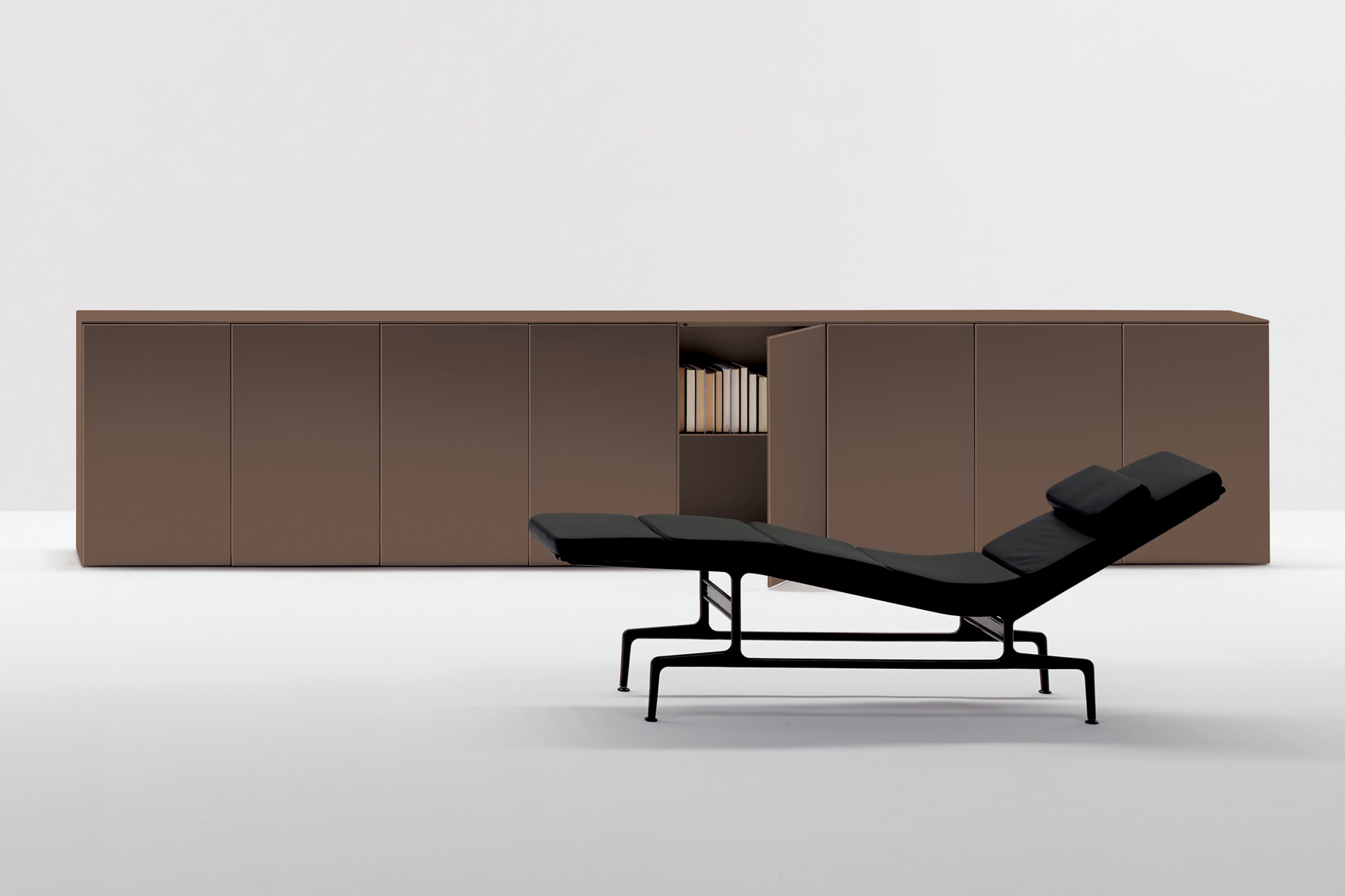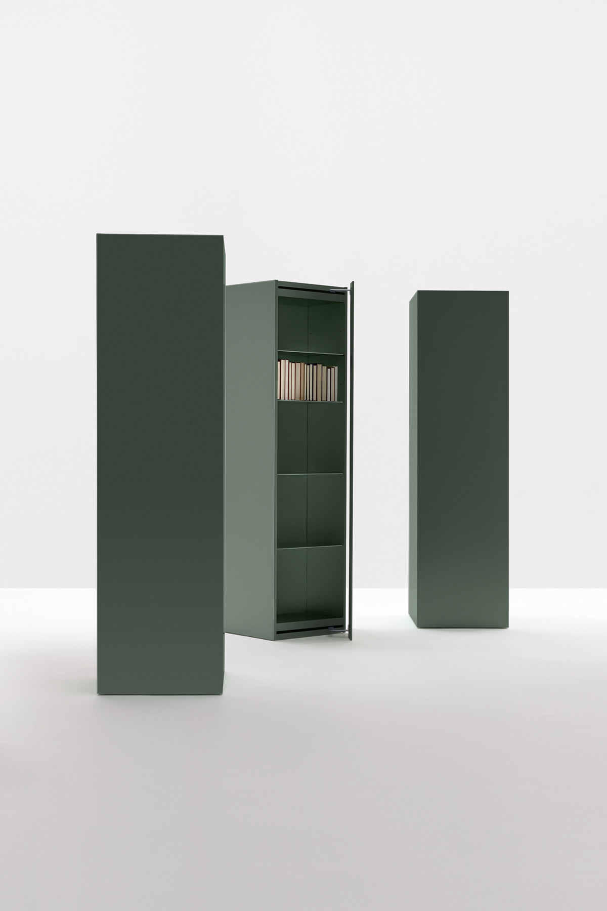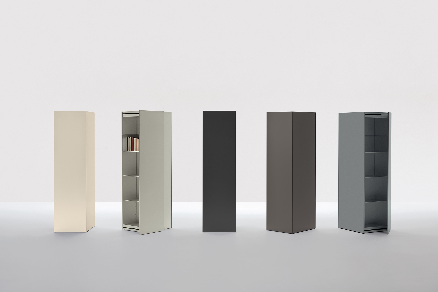 As well as operational and executive workstations, the LessLess Color modular system also brings a brand-new colour scheme to a series of abstract, hi-tech pieces designed to organise our work spaces discreetly yet effectively. Every monochrome workstation is supplemented with a drawer unit, storage containers of varying heights and rotating towers on fixed bases, which are accessible from two sides to ensure the space is fully taken advantage of. These are all available in eight vibrant colour options, bringing a hit of personality and refined design to the work environment.