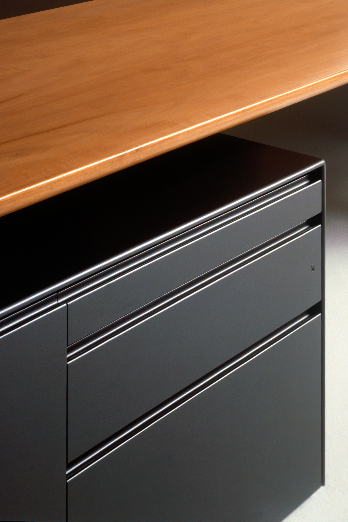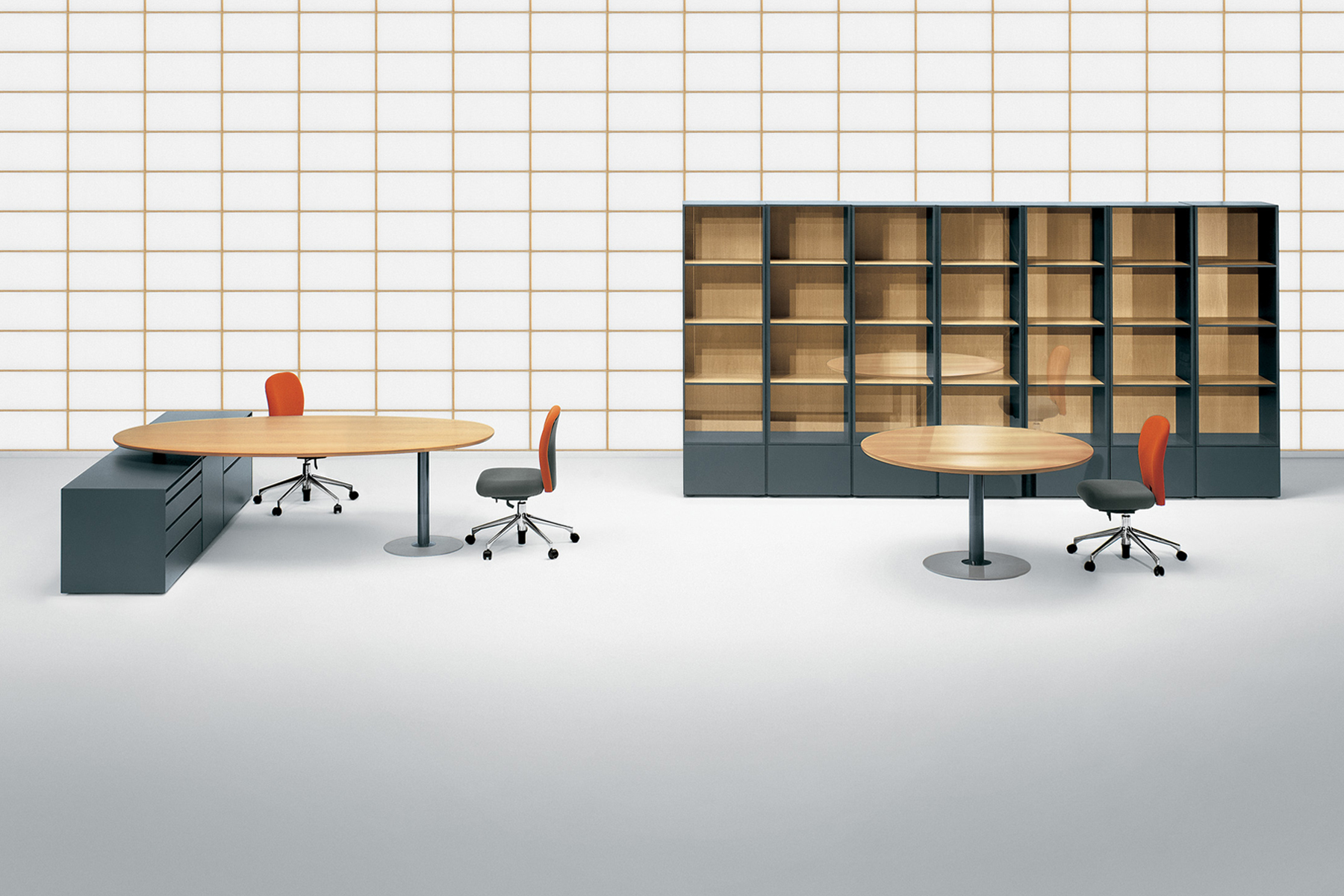 Completing the Mood furniture collection are drawer units, storage units and bookcases, all of which can be seamlessly combined with the desks and tables. The storage units can stand alone or be used as height-adjustable bases for the worktops, ensuring any practical or design need can be accommodated. Open bookcases and closed cabinets with doors bring an extra hit of elegance to the Mood collection, which aims to give top billing to the wellbeing and comfort of the inhabitants of the contemporary office.