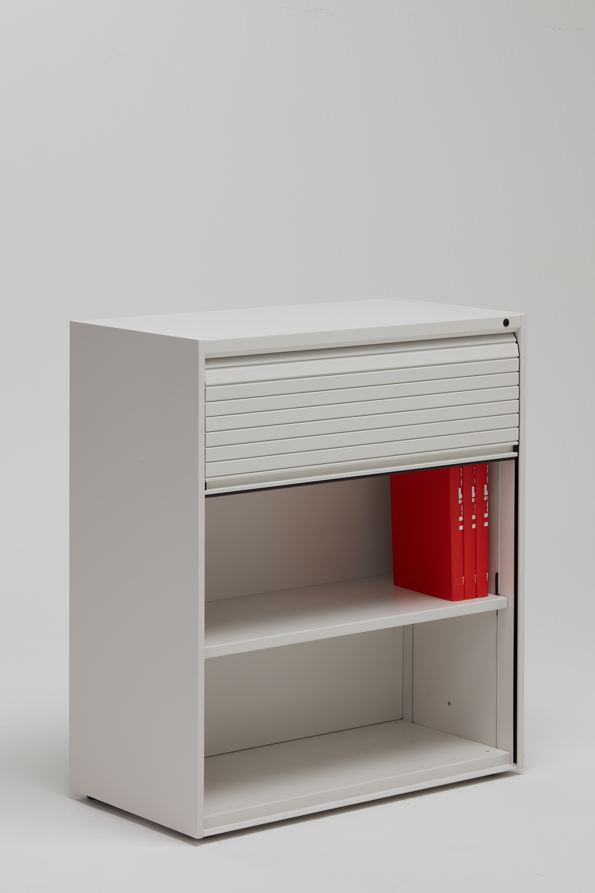 The pieces feature laminated abutments, a base, a cover and a rear panel in metal with painted borders in ABS. The wrap-around roll-top panel, available in the horizontal and vertical settings, is the distinctive feature of this piece, which can be provided in a range of different sizes. The shelves are made from sheet metal and their height can be adjusted. The attention to detail, practicality and rational feel of the MT series mean it can be combined with all UniFor workstations.