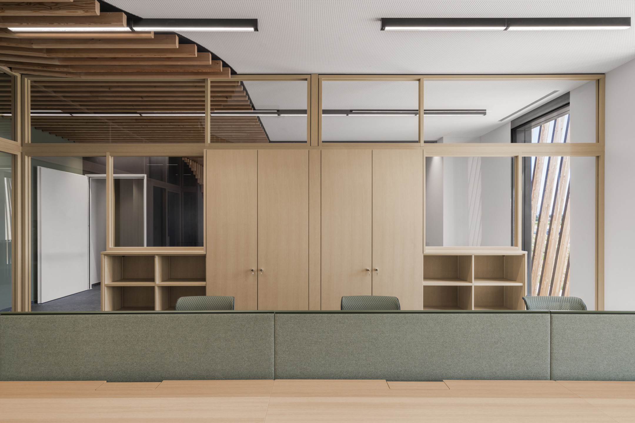 In synergy, Citterio supplied its Wood Wall 88 partitions and Programma 3 equipped walls, enhancing transparency, acoustic comfort, and flexibility.