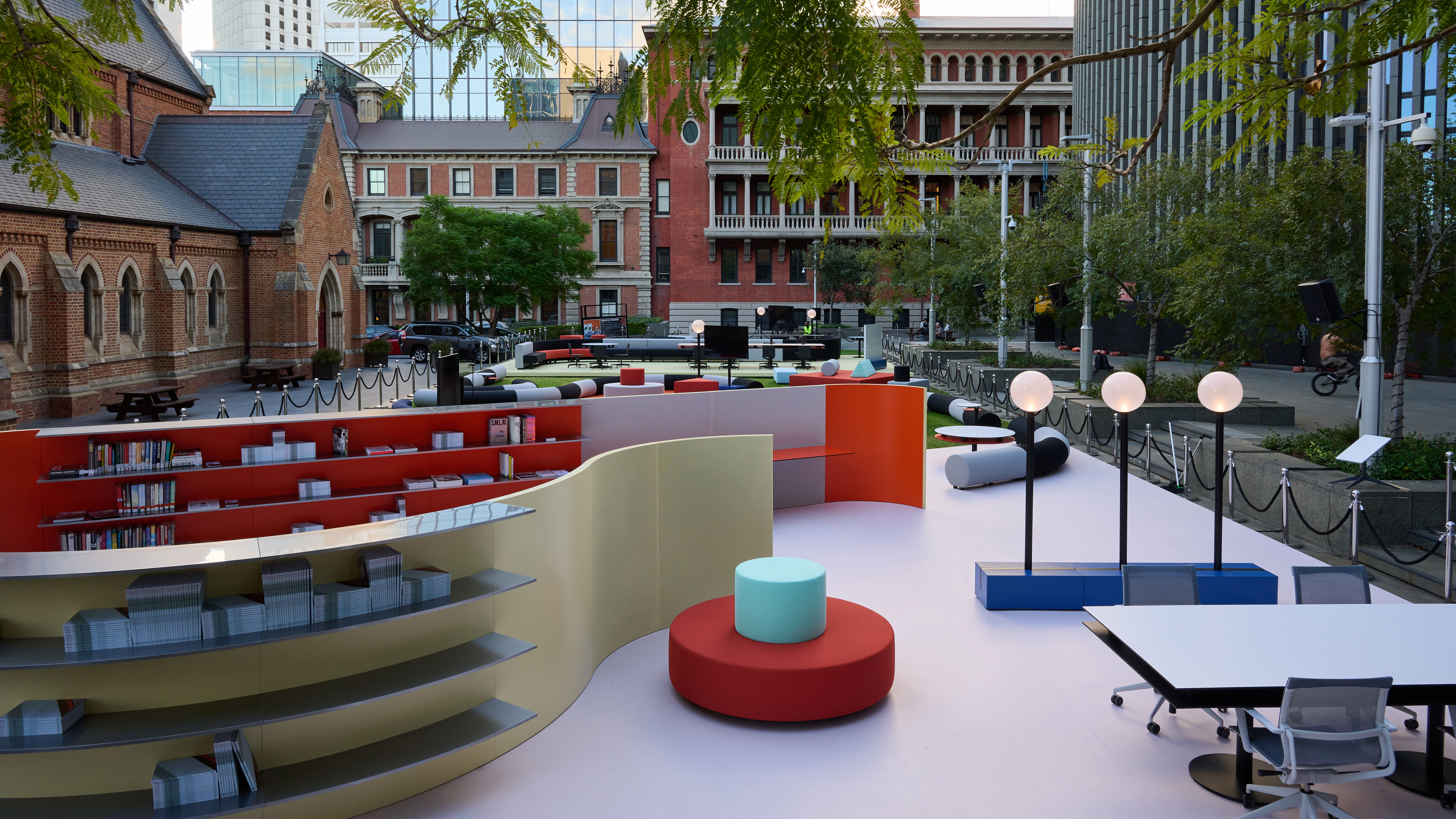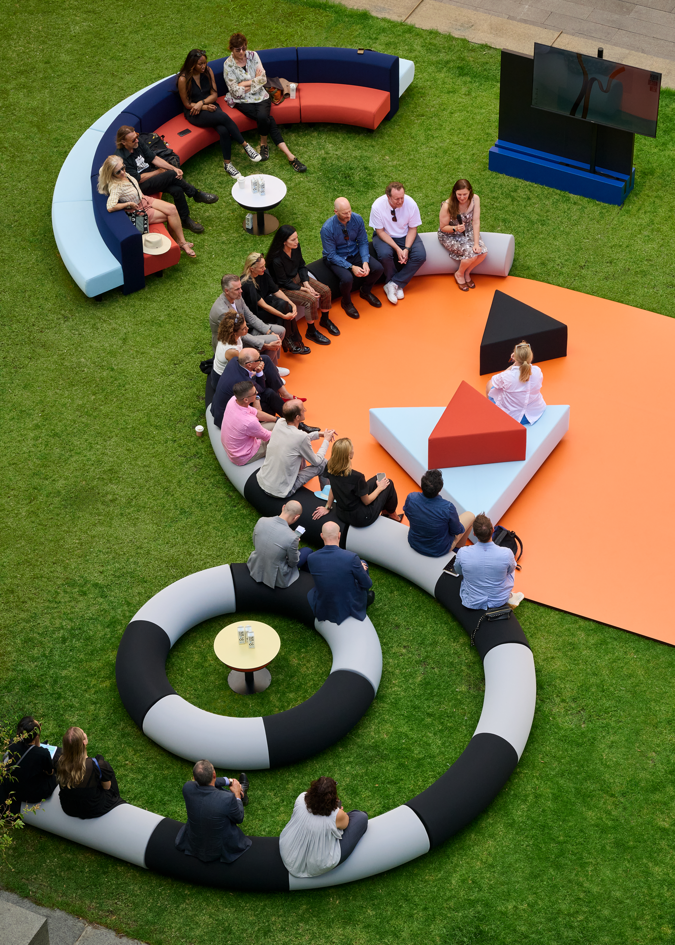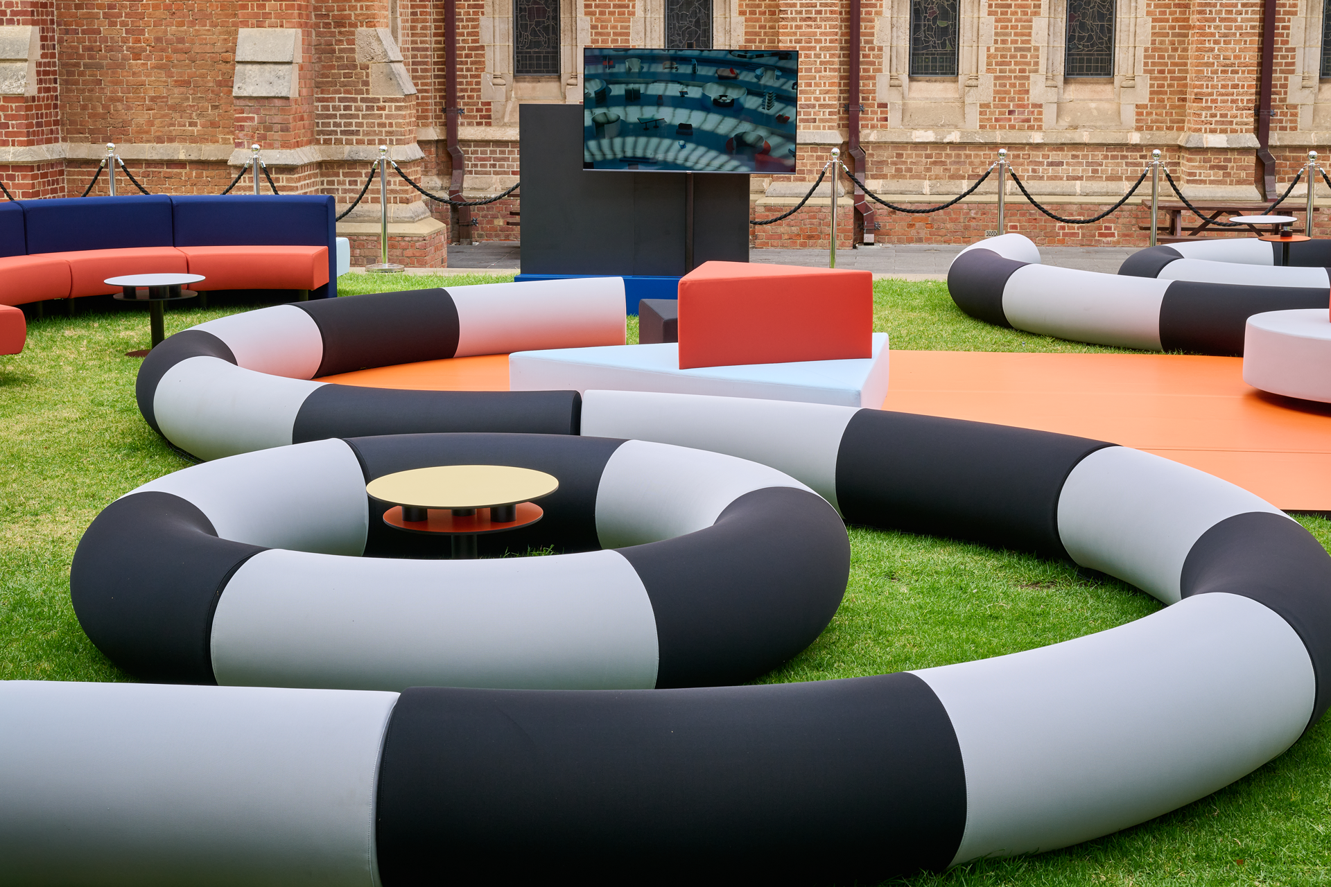 PRINCIPLES Square, l’area di oltre 600 mq in Cathedral Square, è organizzata in modo specifico per offrire al visitatore una panoramica delle multifunzionalità di PRINCIPLES. Le isole imbottite quadrate, rotonde, triangolari e dall’iconica forma a ciambella diventano luoghi di incontro e interazione nelle aree lounge.